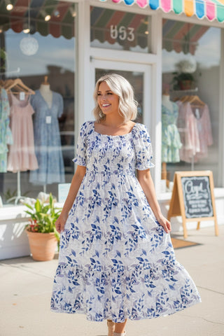 Blue Willow Floral Midi Dress