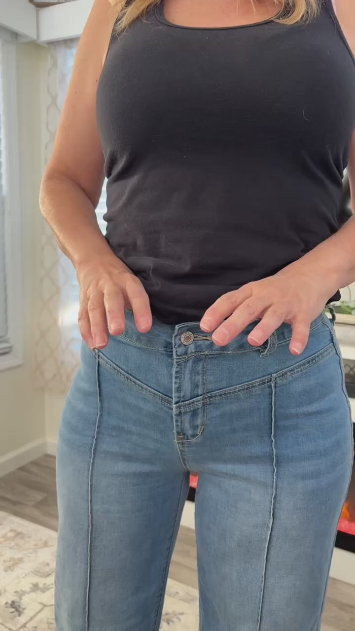 Meet your new go-to denim for effortless style. The Wanderlust Wide-Leg Jeans feature a flattering high-rise fit with a relaxed wide leg that gives you that easy, lived-in look without sacrificing shape. The subtle seam detailing adds just enough interest to elevate them from basic to boutique-worthy.