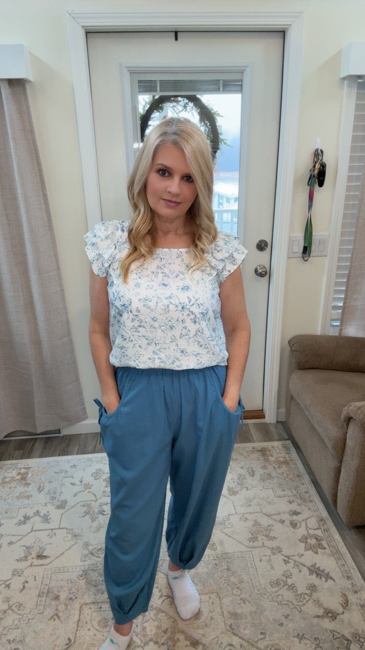 Embrace effortless comfort with these stylish sky blue smocked waist joggers. Featuring a dramatic smocked elastic waistband and relaxed jogger silhouette, these pants combine casual ease with contemporary style.