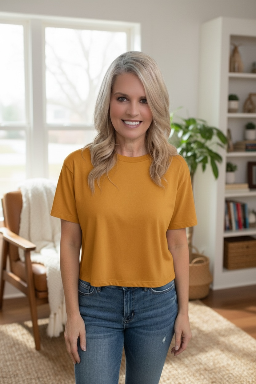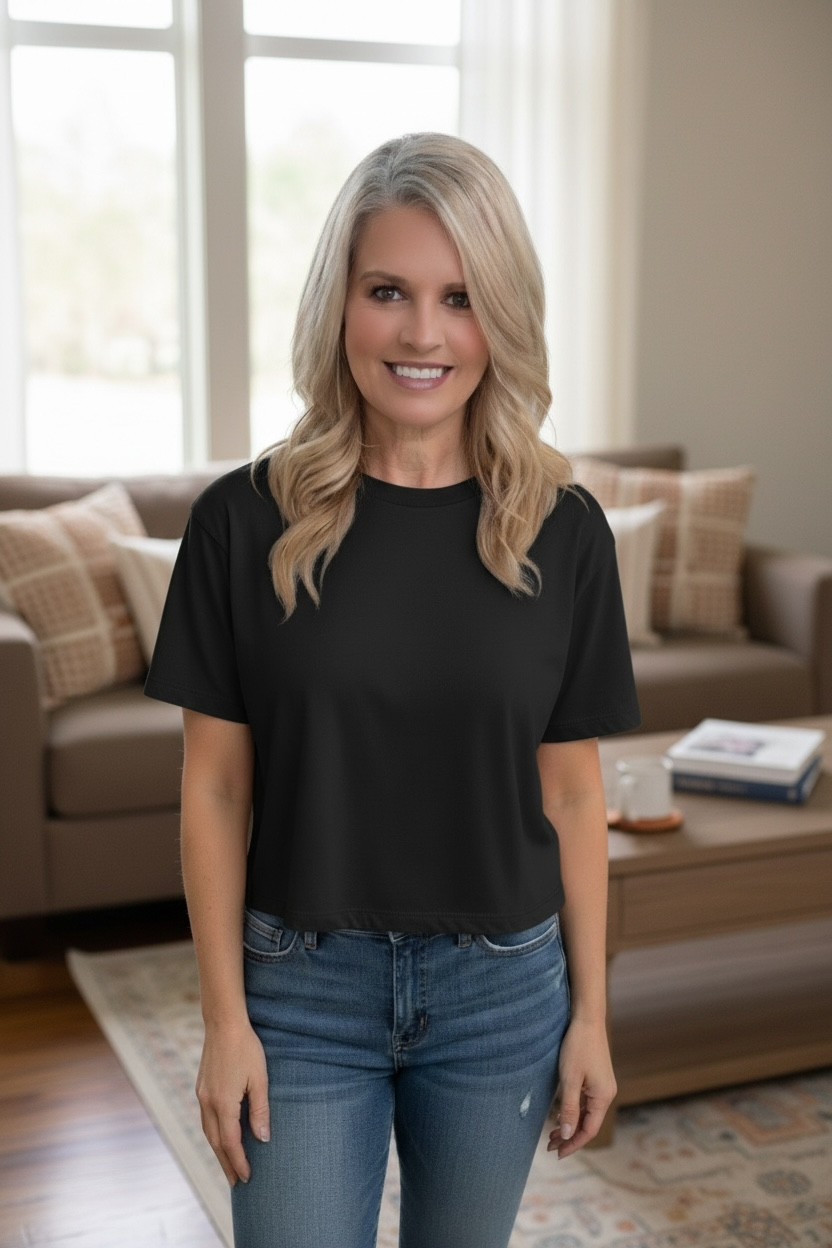 Effortlessly chic and perfectly versatile, this cropped t-shirt is a wardrobe essential. Featuring a relaxed fit and soft fabric, it pairs beautifully with high-waisted jeans, skirts, or shorts for a modern, casual look. Available in a range of colors to match any style.