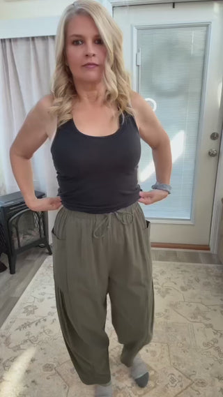 Elevate your casual style with these olive green cargo pants featuring a relaxed, oversized silhouette. These pants combine comfort with functional style, offering multiple cargo pockets and an adjustable drawstring waist.