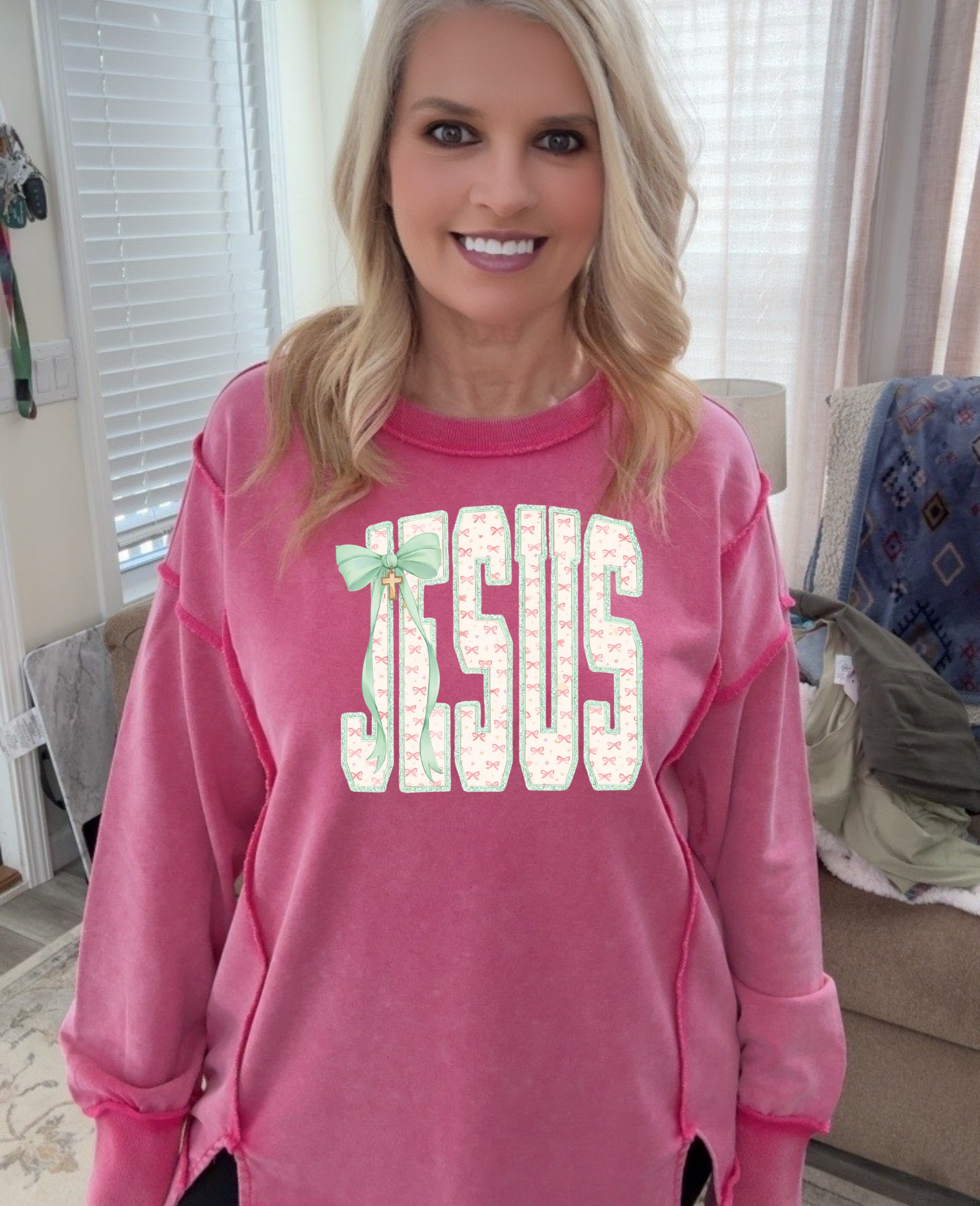 Embrace effortless comfort with this oversized pink crewneck sweatshirt. Crafted from soft, premium fabric, this relaxed-fit pullover features a classic crew neckline, ribbed cuffs and hem, and a flattering longer length that pairs perfectly with leggings or jeans.