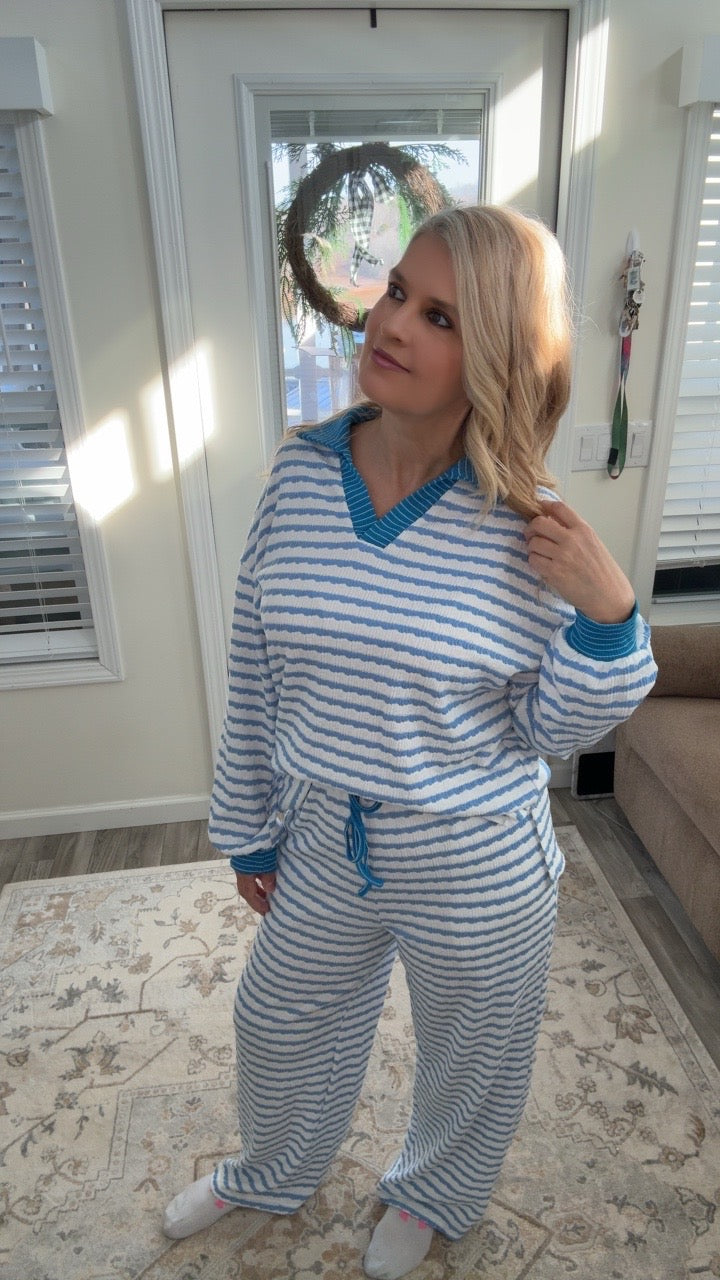 Blue Striped Loungewear Set