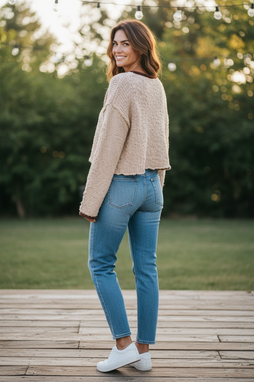 The slightly cropped hem and boxy fit make it the perfect throw-on piece for jeans, leggings, or your go-to weekend denim. Lightweight, soft, and timeless — this sweater feels like your morning coffee in clothing form: warm, comforting, and absolutely essential.